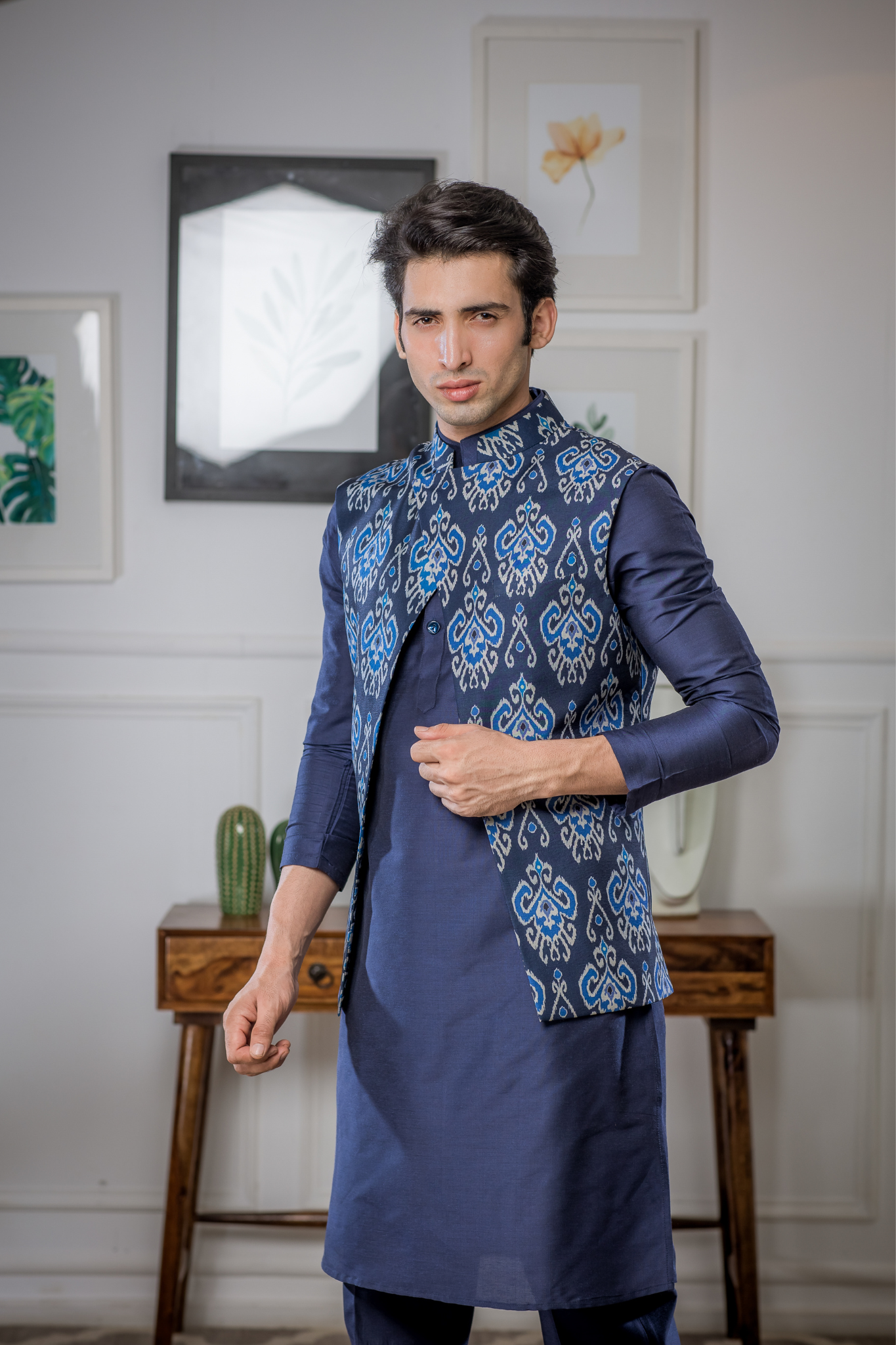 Embrace a rich minimalist look with our playful Blue Hues - Nehru Jacket; handcrafted by our skilled artisans for an elegant and comfortable fit and perfect for all occasions