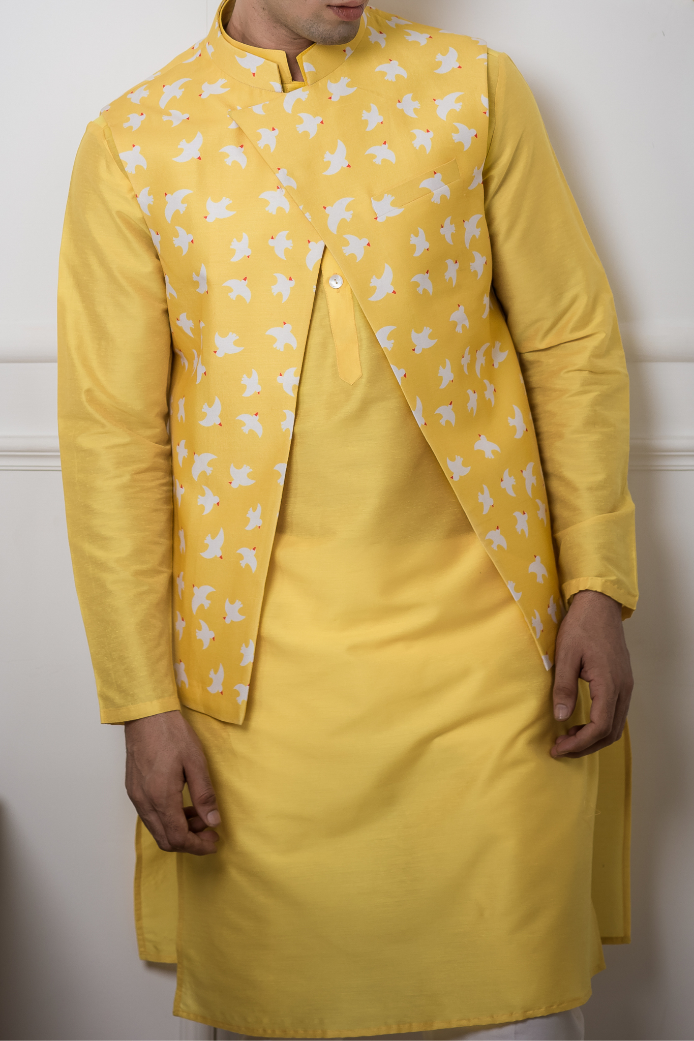 Package content : 1 Chirpy Yellow Birds - Nehru Jacket