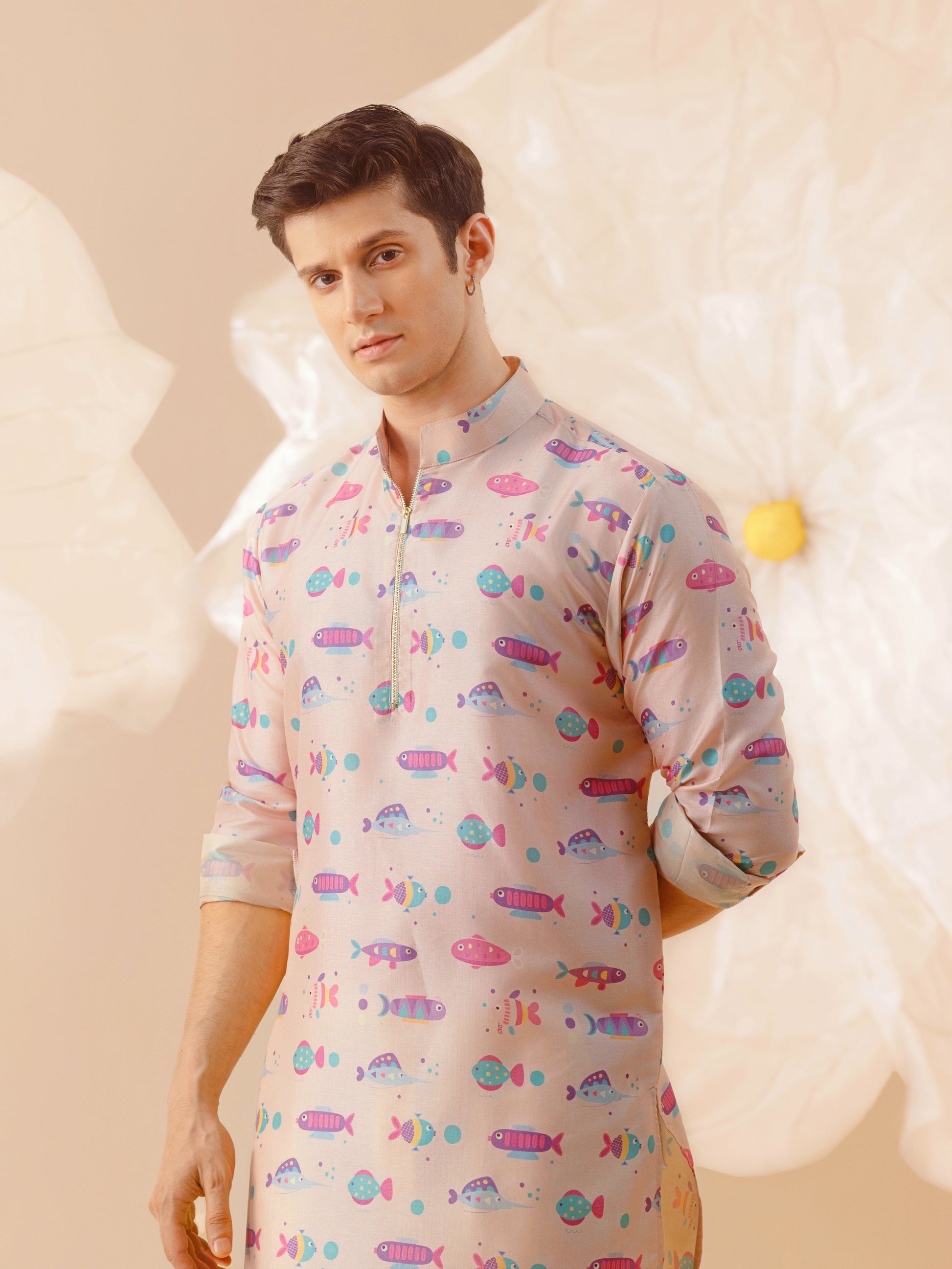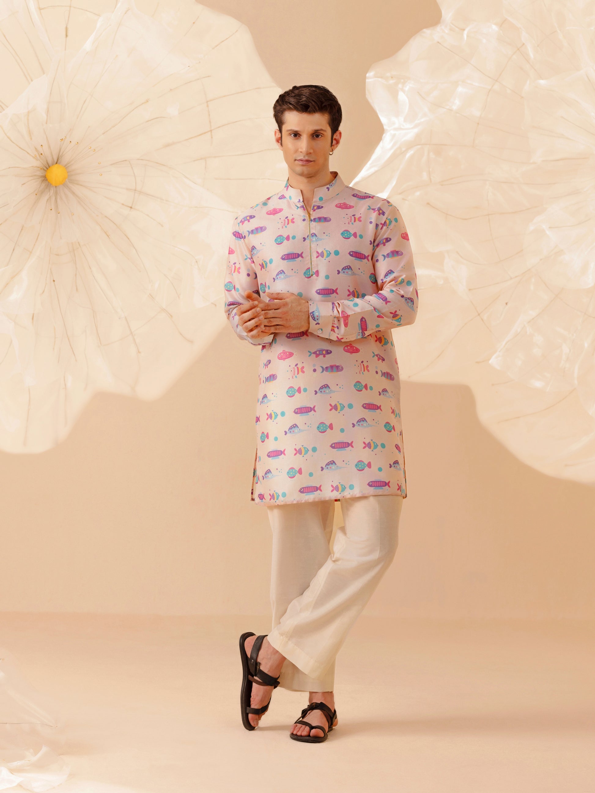Crafted in specially sourced Silk with added softness and a light undertone, this kurta brings never seen design colour palette guaranteeing the oomph factor